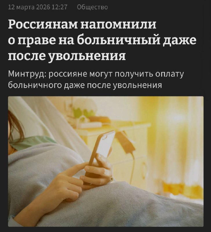 💰Россияне могут получить оплату больничного даже после увольнения. Если человек заболеет в течение 30 дней после ухода с работы и ещё не устроится на новое место, ему положено пособие по временной нетрудоспособности — 60% от среднего заработка. 😄— Подписаться