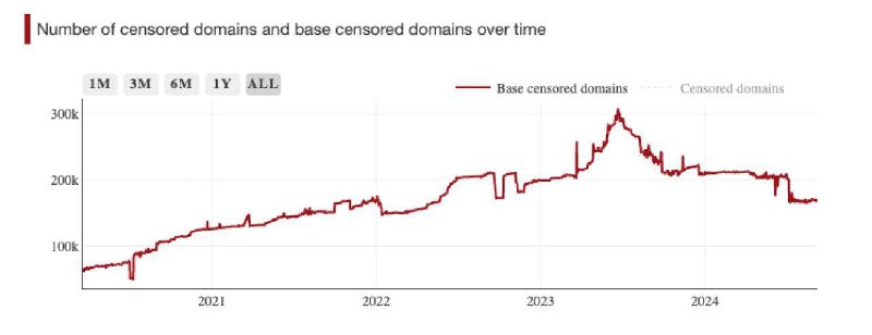 Россия обогнала Китай по числу блокировок доменов. В 2023 году в Китае число заблокированных ресурсов достигло 310 тыс., но затем снизилось до 171 тыс. В России же количество блокировок продолжает расти и уже превышает 300 тыс. доменов📢 Прямой эфир | 📲Наш MAX